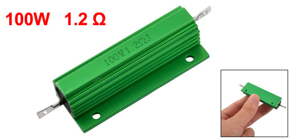 DetailsChassis Mounted Aluminum Case 100W Watt 1.2 Ohm 5% Wirewound Resistor  Product Name Aluminum Housed Resistor Resistance Value 1.2 Ohm Power Rating 100W Resistance Tolerance ± 5% (J) Body Size 59 x 15mm/ 2.3" x 0.6" (L*D) Mounted Hole Size 3.3mm/0.129" Total Size 82 x 21 x 17mm/ 3.2" x 0.8" x 0.7" (L*W*T) Casing Material Aluminum Color Green Weight 30g Package Content 1 x Aluminum Housed Resistor