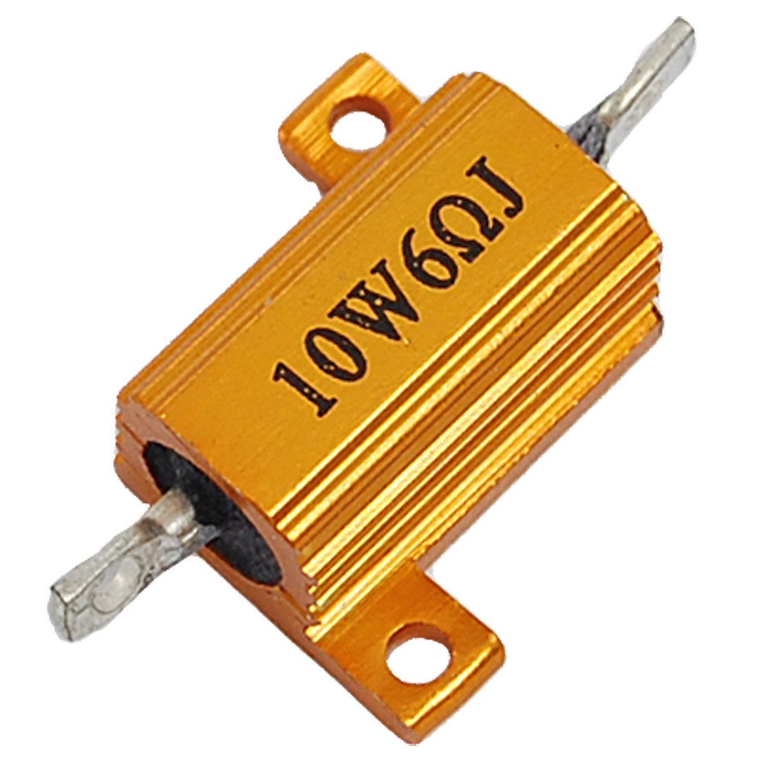 Product Name Aluminum Resistor Resistance Value 6 Ohm Power Rating 10W Resistance Tolerance ± 5% (J) Mounted Hole Diameter 0.2cm/ 0.078" Body Size 1.9 x 1cm/ 0.74" x 0.39" (L*D) Total Size 3.2 x 2.1 x 1cm/ 1.2" x 0.82" x 0.39" (L*W*H) Casing Material Aluminum Color Gold Tone Weight 5g Package Content 1 x Aluminum Wire Wound Resistor - Reviews