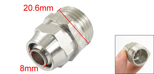 Product Name Quick Coupler Male Thread Diameter 20.6mm / 1/2" PT Fit Tube Outside Dia. 8mm / 0.31" Overall Size 27 x 20mm / 1.1" x 0.8"(L*Max.D) Main Color Silver Tone Main Material Chrome Plated Solid Brass Weight 29g Package Content 1 x Quick Coupler - Reviews