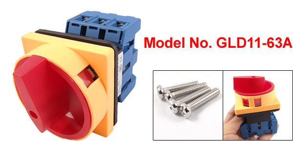 Product Name Universal Changeover Switch Model No. GLD11-63A Mounting Hole Dia. 3mm / 0.118" AC-23A Ue: AC380V, Ith: 63A DC-23A Ue: DC 220V, Ith: 63A Icw 1000A, 1410A Mounting Size 49 x 49mm / 1.9" x 1.9" (L*W) Overall Size 65 x 65 x 100mm / 2.6" x 2.6" x 3.9" (L*W*H) Exterior Material Plastic Exterior Color Red, Yellow, Black, Blue Net Weight 217g Package Content 1 x Universal Changeover Switch 4 x Mounting Screws - Reviews