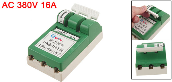 Product Name Disconnect Switch Model No. HK8-16/3 Type Cutter Style Phase Three Phase Pole 3 Rated Voltage AC 380V Rated Current 16A Overall Size(Approx) 114 x 63 x 49mm/ 4.5" x 2.5" x 1.9" (L*W*H) External Material Plastic Color Green, White Net Weight 191g Package Content 1 x Disconnect Switch - Reviews