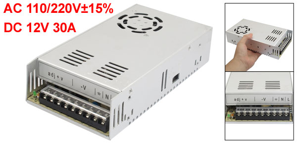 Product Name Switching Power Supply Input AC 110/220V±15% Output DC 12V 30A Overall Dimension 21.4 x 11.3 x 4.8cm / 8.4" x 4.4" x 1.9"(L*W*H) Material Metal, Electronic Parts Color Silver Tone Weight 854g Package Content 1 x Switching Power Supply - Reviews