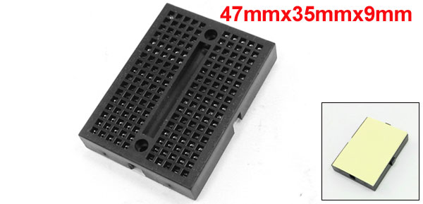 Product Name Solderless Breadboard Color Black Size 47 x 35 x 9mm / 1.8" x 1.4" x 0.35" (L*W*T) Material Plastic, Foam, Electronic Components Connector Aquantity 170 Pcs Net Weight 14g Package Content 1 x Solderless Breadboard - Reviews