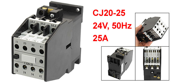 Product Name AC Contactor Model CJ20-25A Material Plastic, Metal Rated Coil Voltage 24V, 50Hz Rated Insulation Voltage(Ui) 660V Rated Operational Current(Ith) 25A Rated Voltage(Ue) 220V 380V 660V Rated Operational Current(Ie) 25A 25A 16A Controled Power(Pe) 5.5KW 11KW 13KW Number of Pole 3 Poles Auxiliary Contact 2NO+2NC Overall Size(Approx.) 5.1 x 8.9 x 12.2cm/2'' x 3.5'' x 4.8'' (L*W*H) Mount Hole Diameter 5mm / 0.2" Mounting Size 35mm Mounting Rail Main Color Black Net Weight 640g Package Content 1 x AC Contactor - Reviews