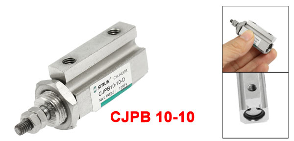 Product Name Thread Pneumatic Cylinder Model CJPB 10-10 Action Type Double Action Fluid Air Bore 10mm/0.39'' Stroke 10mm/0.39'' Max Pressure 1.0MPa Overall Size 5.5 x 2 x 1.5cm/ 2.2" x 0.8" x 0.6"(L*W*H) Material Metal Color Silver Tone Weight 63g Package Content 1 x Pneumatic Cylinder - Reviews