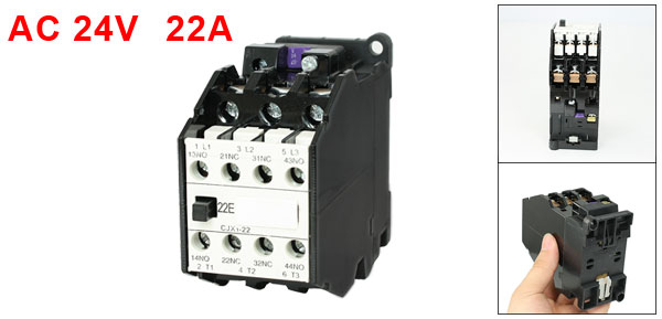 CJX1-22 AC Contactor 24V 50Hz Coil 22A 3-Phase 3-Pole 2NO + 2NC