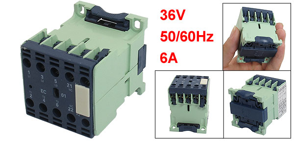 Product Name AC Contactor Model Number CJX2-0601E Rated Coil Voltage 36V Frequency 50/60Hz Rated Operational Current 6A Contact Type 1NC Pole Number 3 Pole Conventional Thermal Current(Ith) 16A Rated Insulation Voltage(Ui) 660V AC-3 Rated Voltage(Ue) 220/380/660V AC-3 Controled Power(Pe) 1.5/2.2/3KW Total Size(Approx) 4.5 x 4.4 x 5.7cm / 1.8" x 1.72" x 2.25" (L*W*H) Material Plastic, Electrical Parts Main Color As Picture Shown Net Weight 150g Package Content 1 x AC Contactor - Reviews