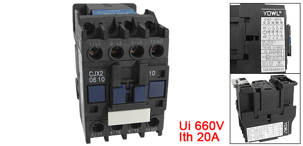 Product Name AC Contactor Model Number CJX2-0610 Material Plastic, Metal, Electrical Parts Rated Coil Voltage AC 220V, 50/60Hz Rated Operational Current 6A Conventional Thermal Current(Ith) 20A Rated Insulation Voltage(Ui) 660V AC-3 Rated Voltage(Ue) 220 380 660 V Rated Operational Current(Ie) 6 6 6.6 A Controled Power(Pe) 1.5 2.2 3 KW AC-1 20A AC-3 6A Number of Contact 3P+NO Overall Size(Approx.) 7.5 x 4.5 x 8cm / 3.0'' x 1.8'' x 3.1''(L*W*H) Main Color Black Net Weight 332g Package Content 1 x AC Contactor - Reviews