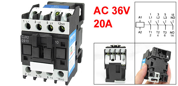 Product Name AC Contactor Model Number CJX2-0910 Rated Coil Voltage AC 36V Frequency 50/60Hz Contact Type 1NO Pole Number 3 Pole Conventional Thermal Current(Ith) 20A Rated Insulation Voltage(Ui) AC 660V AC-3 Rated Voltage(Ue) 220/380 AC-3 Controled Power(Pe) 2.2/4KW Total Size(Approx) 79 x 46 x 71mm/ 3.1" x 1.8" x 2.8" (L*W*H) Rail Mounting 35mm DIN Rail Material Plastic, Electrical Parts Main Color Black, White Net Weight 342g Package Content 1 x AC Contactor - Reviews