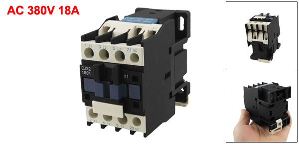 Product Name AC Contactor Model Number CJX2-1801 Material Plastic, Metal, Electrical Parts Rated Insulation Voltage(Ui) 660V Conventional Thermal Current(Ith) 32A Rated Operational Current 18A Rated Coil Voltage 380V, 50/60Hz AC-3 Ue(V) 220 380 660 Ie(A) 18 18 10.6 Pe(KW) 4 7.5 9 Number of Contact 3P+NC Overall Size(Approx.) 7.5 x 4.5 x 8cm / 3'' x 1.8'' x 3.1''(L*W*H) Main Color Black, White, Blue Net Weight 351g Package Content 1 x AC Contactor - Reviews