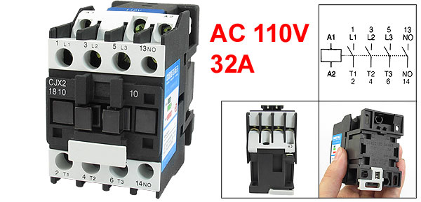 Product Name AC Contactor Model Number CJX2-1810 Rated Coil Voltage AC 110V Frequency 50/60Hz Contact Type 1NO Pole Number 3 Pole Conventional Thermal Current(Ith) 32A Rated Insulation Voltage(Ui) AC 660V AC-3 Rated Voltage(Ue) 220/380 AC-3 Controled Power(Pe) 4/7.5KW Total Size(Approx) 79 x 44 x 71mm/ 3.1" x 1.7" x 2.8" (L*W*H) Rail Mounting 35mm DIN Rail Material Plastic, Electrical Parts Main Color Black Net Weight 370g Package Content 1 x AC Contactor - Reviews