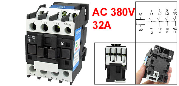 Product Name AC Contactor Model Number CJX2-1810 Rated Coil Voltage AC 380V Frequency 50/60Hz Contact Type 1NO Pole Number 3 Pole Conventional Thermal Current(Ith) 32A Rated Insulation Voltage(Ui) AC 660V AC-3 Rated Voltage(Ue) 220/380 AC-3 Rated Current(Ie) 18/18A AC-3 Controled Power(Pe) 4/7.5KW Total Size(Approx) 79 x 44 x 71mm/ 3.1" x 1.7" x 2.8" (L*W*H) Rail Mounting 35mm DIN Rail Material Plastic, Electrical Parts Main Color Black Net Weight 365g Package Content 1 x AC Contactor - Reviews