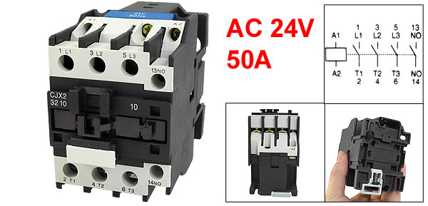 Product Name AC Contactor Model Number CJX2-3210 Rated Coil Voltage AC 24V Frequency 50Hz Contact Type 1NO Pole Number 3 Pole Conventional Thermal Current(Ith) 50A Rated Insulation Voltage(Ui) AC 660V AC-3 Rated Voltage(Ue) 220/380V AC-3 Controled Power(Pe) 7.5/15KW Total Size(Approx) 94 x 55 x 80mm/ 3.7" x 2.2" x 3.1" (L*W*H) Rail Mounting 35mm DIN Rail Material Plastic, Electrical Parts Main Color Black, Gray Net Weight 538g Package Content 1 x AC Contactor - Reviews