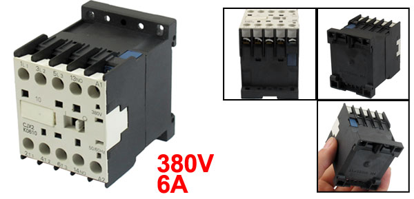 Product Name AC Contactor Model Number CJX2-K0610 Rated Coil Voltage 380V Frequency 50/60Hz Rated Operational Current 6A Contact Type 1NO Pole Number 3 Pole Rated Insulation Voltage(Ui) 690V AC-3 Rated Voltage(Ue) 220/380/660V AC-3 Controled Power(Pe) 1.5/2.2/3KW Fixing DIN Rail Size 35 x 50mm / 1.38" x 1.97" (W*L) Mounting Hole Size M4 Total Size(Approx) 5.8 x 4.5 x 5.7cm / 2.3" x1.8" x 2.2" (L*W*H) Material Plastic, Electrical Parts Main Color Black, White Net Weight 177g Package Content 1 x AC Contactor - Reviews