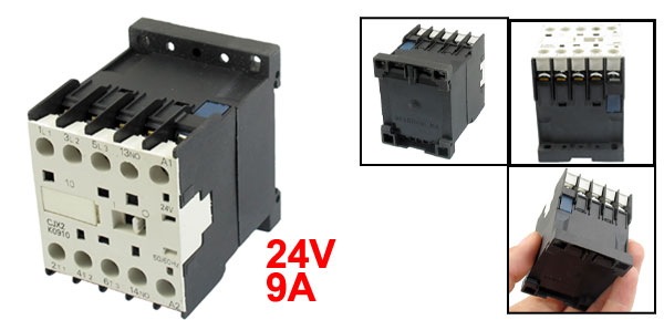 Product Name AC Contactor Model Number CJX2-K0910 Rated Coil Voltage 24V Frequency 50/60Hz Rated Operational Current 9A Contact Type 1NO Pole Number 3 Pole Rated Insulation Voltage(Ui) 690V AC-3 Rated Voltage(Ue) 220/380/660V AC-3 Controled Power(Pe) 2.2/4/4KW Fixing DIN Rail Size 35 x 50mm / 1.38" x 1.97" (W*L) Mounting Hole Size M4 Total Size(Approx) 5.8 x 4.5 x 5.7cm / 2.3" x1.8" x 2.2" (L*W*H) Material Plastic, Electrical Parts Main Color Black, White Net Weight 174g Package Content 1 x AC Contactor - Reviews
