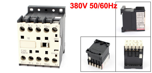 Main Color Black, Beige Brand DMiotech Country of Manufacture CHINA Model CJX2-K0910 Rated Coil Voltage 380V 50/60Hz Material Plastic, Electrical Parts Ith 20A Dimension 58 x 45 x 58mm / 2.3" x 1.77" x 2.3" (L*W*H) Ui 690V Net Weight 170g Package Content 1 x AC Contactor Auxiliary Contact 3 Poles + 1 NO Switch Mounting Type 35mm DIN Rail AC-3 (Ue/Ie/Pe) 220V/9A/2.2kW, 380V/9A/4kW, 660V/9A/4kW - Reviews