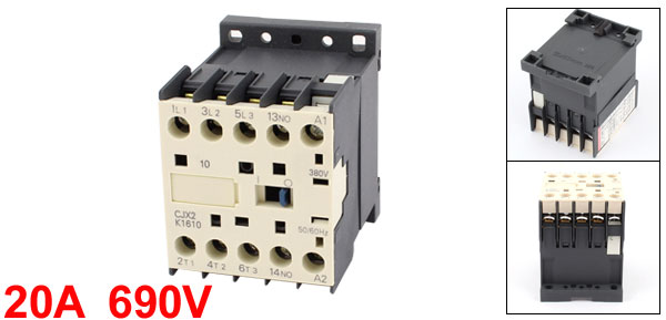 Main Color Black, Beige Brand DMiotech Country of Manufacture CHINA Model CJX2-K1610 Rated Coil Voltage 380V 50/60Hz Material Plastic, Electrical Parts Ith 20A Dimension 58 x 45 x 58mm / 2.3" x 1.77" x 2.3" (L*W*H) Ui 690V Net Weight 170g Package Content 1 x AC Contactor Auxiliary Contact 3 Poles + 1 NO Switch Mounting Type 35mm DIN Rail AC-3 (Ue/Ie/Pe) 220V/16A/3kW, 380V/16A/7.5kW, 660V/12A/4kW - Reviews