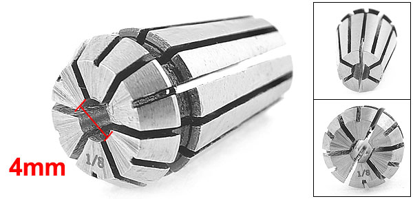 Product Name Spring Collet Model No. ER11 Clamping Diameter 4mm/ 1/8 Overall Size 12 x 18mm/ 0.5" x 0.7"(Dia*Length) Material Stainless Steel Color Silver Tone Net Weight 8g Package Content 1 x Spring Collet - Reviews