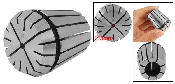 Product Name Spring Collet Model No. ER32-3 Clamping Range 3.0-2.0mm/0.118"-0.0787" Accuracy 0.001mm Suitable for ER Collet Chuck Holder Overall Size 32.8 x 39.6mm/1.29" x 1.56"(Dia*Length) Material Stainless Steel Color Silver Tone Net Weight 137g Package Content 1 x Spring Collet - Reviews