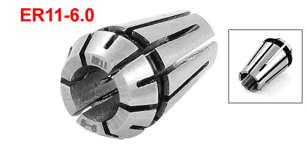 Product Name Spring Collet Model No. ER11 Clamping Range 4-5mm/ 0.16"-0.2" Clamping Diameter 6mm/ 0.24" Overall Size 12 x 18mm/0.5" x 0.9"(Dia*Length) Material Stainless Steel Color Silver Tone Net Weight 7g Package Content 1 x Spring Collet - Reviews