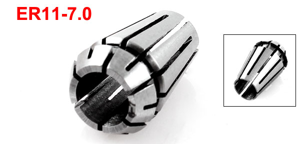 Product Name Spring Collet Model No. ER11 Clamping Range 6-7mm/ 0.24"-0.28" Clamping Diameter 7mm/ 0.28" Overall Size 12 x 18mm/ 0.5" x 0.7"(Dia*Length) Material Stainless Steel Color Silver Tone Net Weight 5g Package Content 1 x Spring Collet - Reviews