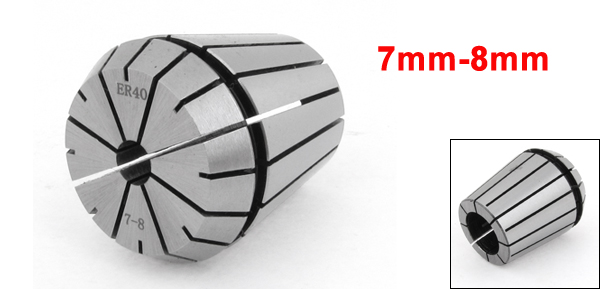 DetailsClamping Range 7-8mm ER40 Precision Spring Collet Reaming Part  Product Name Spring Collet Model No. ER40 Clamping Range 7-8mm/ 0.3"-0.31" Clamping Diameter 8mm/ 0.31" Overall Size 40 x 45mm/ 1.6" x 1.8"(Dia*Length) Material Stainless Steel Color Silver Tone Net Weight 259g Package Content 1 x Spring Collet