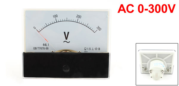 Thread Dia 1/8" Panel Size 100 x 80 x 12mm / 4" x 3" x 0.5" (L*W*T) Main Color White, Black, Clear, Beige Brand DMiotech Net Weight 110g Country of Manufacture CHINA Model 44L1 Package Content 1 x Analog Voltage Meter Measuring Range AC 0-300V Material Plastic, Metal Accuracy Class 1.5 Total Depth 6cm / 2.4" - Reviews