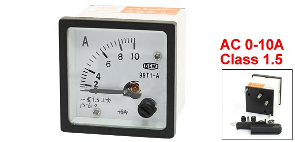 AC Current Panel Meter Model No. 99T1-A Scale Range AC 0-10A Accuracy Class 1.5 Back Screw Diameter 2.2mm/ 0.09" & 3.8mm/ 0.15" Panel Size 48 x 48 x 5mm/ 1.9" x 1.9" x 0.2" (L*W*T) Overall Depth 44mm/ 1.7"(not include screw) Color White & Black Main Material Plastic & Metal Net Weight 61g Package 1 x AC Current Panel Meter