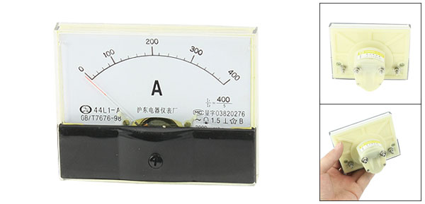 Product Name Analog Ammeter Model 44L1-A Measuring Current Range AC 0-400A Accuracy Class 1.5 Meter Face Size(Approx) 10 x 8 x 1.3cm / 4" x 3.1" x 0.39"(L*W*T) Thread Size 2.8mm x 0.9mm(D*L)