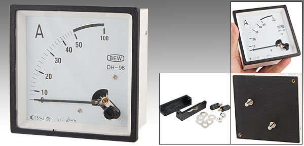 Product Name Analog Ammeter Model DH-96 Measuring Current Range AC 0-50A Accuracy Class 1.5 Face Size(Approx) 9.6 x 9.6cm / 3.7" x 3.7"(L*W) Thread Size 0.46 x 1.15cm / 0.181" x 0.45"(D*L) Overall Depth 6.3cm / 2.5" Color White, Black External Material Plastic Net Weight 155g Package Content 1 x Analog Ammeter Several Installing Parts - Reviews