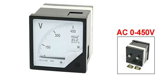 Product Name Analog Voltmeter Model 6L2 Measuring Voltage Range AC 0-450V Accuracy Class 1.5 Back Screw Diameter 7mm/ 0.28" Meter Face Size(Approx) 8 x 8 x 1cm/ 3.1" x 3.1" x 0.4" (L*W*T) Overall Depth 7.3cm / 2.9" Color Black, White Material Metal, Plastic Net Weight 179g Package Content 1 x Analog Voltmeter