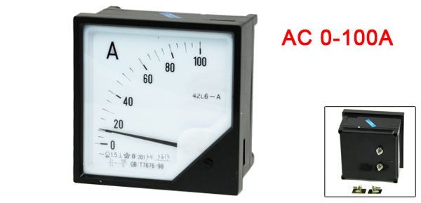 Product Name Analog Ammeter Measuring Current Range AC 0-100A Accuracy Class 1.5 Meter Face Size 120 x120 x 12mm / 4.7" x 1.7" x 0.47"(L*W*T) Thread Size 0.38 x 0.75cm / 0.15" x 0.29"(Dia.*L) Overall Depth 75mm / 2.95" External Material Plastic Color White, Black Net Weight 286g Package Content 1 x Analog Ammeter
