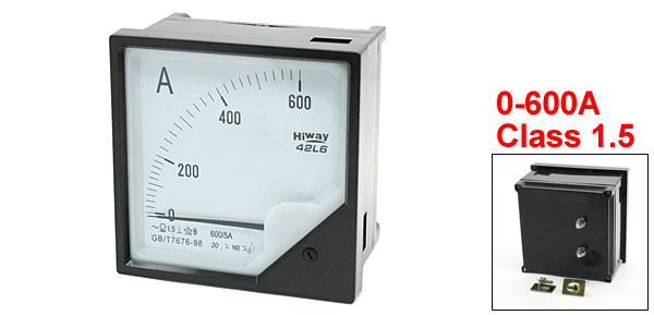 DetailsClass 1.5 Accuracy AC 0-600A Square Panel Meter Ammeter 42L6  Product Name AC Ammeter Model No. 42L6 Scale Range 0-600A Accuracy Class 1.5 Total Size 12 x 12 x 7.5cm/ 4.7" x 4.7" x 3"(L*W*T) Back Screws Dia. 5mm/ 0.2" Main Color White, Black Main Material Plastic & Metal Weight 292g Package 1 x AC Ammeter