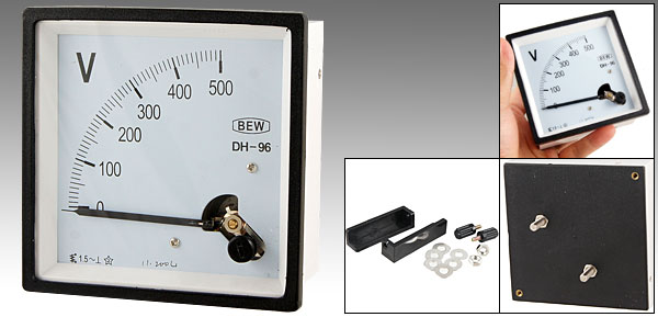 Product Name Analog Voltmeter Model DH-96 Measuring Voltage Range AC 0-500V Accuracy Class 1.5 Face Size(Approx) 9.6 x 9.6cm / 3.7" x 3.7"(L*W) Thread Size 0.46 x 1.3cm / 0.181" x 0.51"(D*L) Overall Depth 6.4cm / 2.5" Color White, Black External Material Plastic Net Weight 177g Package Content 1 x Analog Voltmeter Several Installing Parts - Reviews