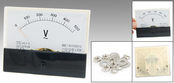 Product Name Analog Voltmeter Model 44L1 Measuring Voltage Range AC 0 - 500V Accuracy Class 1.5 Meter Face Size(Approx) 9.8 x 7.8 x 1.2cm/ 3.8" x 3" x 0.5"(L*W*T) Thread Size 0.4 x 0.7cm/ 0.15" x 0.27"(D*L) 0.4 x 1.2cm/ 0.15" x 0.47"(D*L) Overall Depth 4.7cm/ 1.8" Color White, Black Net Weight 117g Package Content 1 x Analog Voltmeter Several Installing Parts - Reviews
