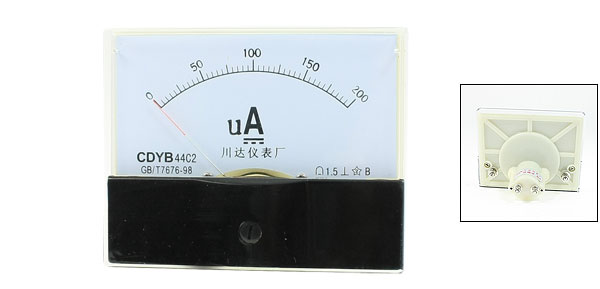 Product Name Analog Ammeter Model CDYB44C2 Measuring Current Range DC 0-200uA Accuracy Class 1.5 Meter Face Size(Approx) 9.8 x 7.8 x 1.2cm / 3.9" x 3.1" x 0.5"(L*W*T) Thread Dia(Approx) Big One: 0.38cm / 0.15" Small One: 0.28cm / 0.11" Overall Depth 4.8cm / 1.9" Net Weight 95g Package Content 1 x Analog Ammeter Several Mounting Nuts & Gaskets - Reviews