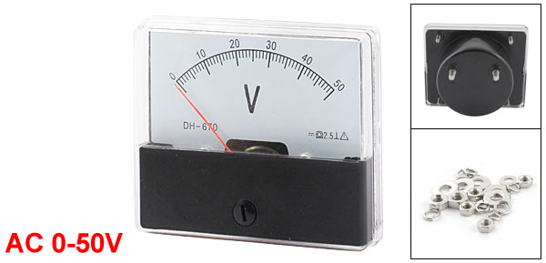 Main Color Black,White Brand DMiotech Net Weight 71g Meter Face Size(Approx) 72 x 61 x 13mm/2.8" x 2.4" x 0.51"(L*W*T) Country of Manufacture CHINA Model DH-670 Package Content 1 x Voltmeter Measuring Voltmeter Range AC 0-50V Material Plastic,Metal Overall Depth 25mm/1.0" Accuracy Class 2.5 Thread Size 4mm/0.16";3mm/0.12" - Reviews