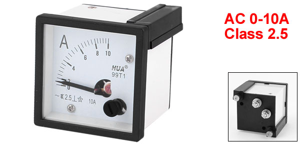 AC Current Panel Meter Model No. 99T1-A Scale Range AC 0-10A Accuracy Class 2.5 Back Screw Diameter 2.2mm/ 0.09" & 3.8mm/ 0.15 Panel Size 48 x 48 x 5.5mm/ 1.9" x 1.9" x 2.2" (L*W*T) Overall Depth 44mm/ 1.7"(not include screw) Color White & Black Main Material Plastic & Metal Net Weight 69g Package 1 x AC Current Panel Meter