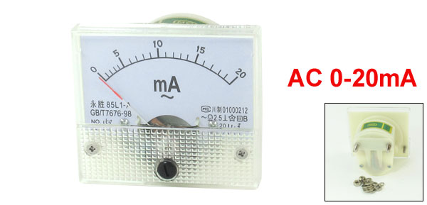 Product Name Analog Ammeter Model 85L1-A Measuring Current Range AC 0-20mA Accuracy Class 2.5 Meter Face Size(Approx) 6.3 x 5.5 x 1cm / 2.5" x 2.2" x 0.39"(L*W*T) Thread Size 0.4 x 0.8cm / 0.16" x 0.31"(D*L) 0.3 x 0.8cm / 0.12" x 0.31"(D*L) Overall Depth 4.6cm / 1.8" Net Weight 70g Package Content 1 x Analog Ammeter Several Mounting Nuts & Gaskets - Reviews