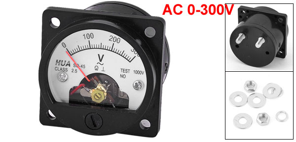 Product Name Analog Voltmeter Model SO-45 Measuring Current Range AC 0-300V Accuracy Class 2.5 Meter Face Diameter 45mm/ 1.8" Screw Thread Diameter 5mm/ 0.2"