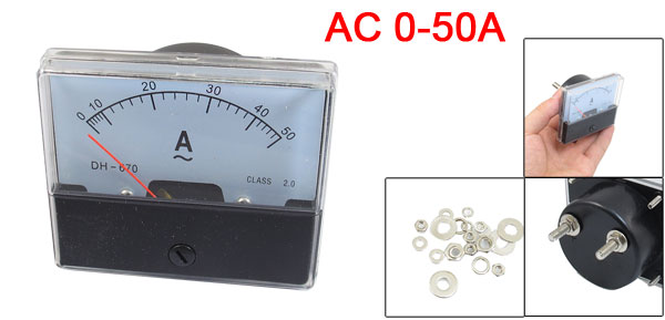 Product Name Analog Ammeter Model DH670 Measuring Current Range AC 0-50A Accuracy Class 2.5 Meter Face Size.(Approx) 70 x 60mm / 2.8" x 2.4"(L*W) Thread Diameter 5mm/ 0.2" Overall Depth 50mm/ 2" Color White, Black Net Weight 68g Package Content 1 x Analog Ammeter - Reviews