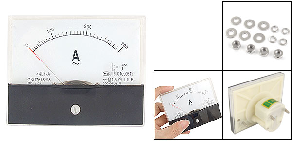 Product Name Analog Ammeter Model 44L1-A Type AC Accuracy Class 2.5 Measuring Current Range AC 0-300A Total Size 9.8 x 7.8 x 6.5cm/3.9'' x 3.1'' x 2.6'' (L*W*H) Base Size(Not Included Screw) 4.9 x 3.6 x 3.3cm/1.9'' x 1.4'' x 1.3'' (L*W*H) Thread Dia. 0.4cm/0.16'' Material Pllastic Color Black, Clear Net Weight 149g Package Content 1 x AC Analog Ammeter