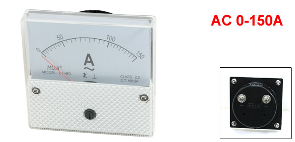 Product Name Analog Ammeter Model DH-80 Measuring Current Range AC 0-150A Accuracy Class 2.5 Total Size 8.1 x 8.1 x 4.5cm/3.2" x 3.2" x 1.8"(L*W*T) Thread Dia. 5mm/ 0.2"