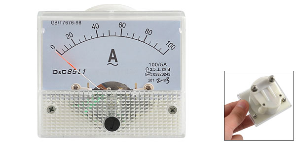Product Name Ampere Panel Meter Scale Range 0-100A Accuracy Class 2.5 Material Plastic Color White, Clear, Beige Back Screw Dia. 3.8 mm / 0.15" & 2.8 mm / 0.11" Panel Size 6.3 x 5.5 x 1.1 cm / 2.5" x 2.2" x 0.4" (L*W*T) Overall Depth 6 cm / 2.36" Weight 74g Package Content 1 x AC Ampere Panel Meter - Reviews
