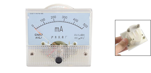 Product Name Milliampere Panel Meter Scale Range 0-500MA Accuracy Class 2.5 Material Plastic Color White, Clear, Beige Back Screw Dia. 3.8 mm / 0.15" & 2.8 mm / 0.11" Panel Size 6.3 x 5.5 x 1.1 cm / 2.5" x 2.2" x 0.4" (L*W*T) Overall Depth 6 cm / 2.36" Weight 97g Package Content 1 x AC Milliampere Panel Meter - Reviews
