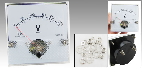 Product Name Analog Voltmeter Measuring Voltage Range DC 0-250V Accuracy Class 2.5 Meter Face Size(Approx) 8 x 8 x 1.3cm / 3.1" x 3.1" x 0.5"(L*W*T) Thread Size 0.48 x 1.3cm / 0.19" x 0.5"(D*L) 0.3 x 0.9cm / 0.11" x 0.35"(D*L) Overall Depth 3.5cm / 1.37" Color White, Black Net Weight 104g Package Content 1 x Analog Voltmeter Several Installing Parts - Reviews