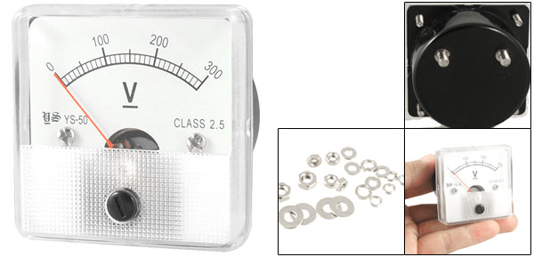 Product Name Analog Voltmeter Model No. YS-50 Measuring Voltage Range DC 0-300V Accuracy Class 2.5 Meter Face Size(Approx) 5 x 5 x 1cm / 1.97" x 1.97" x 0.4"(L*W*T) Thread Dia(Approx) 0.38cm / 0.150" 0.28cm / 0.110" Overall Depth 4.5cm / 1.8" Color White Material Metal & Plastic Net Weight 56g Package Content 1 x Analog Voltmeter Several Installing Parts - Reviews