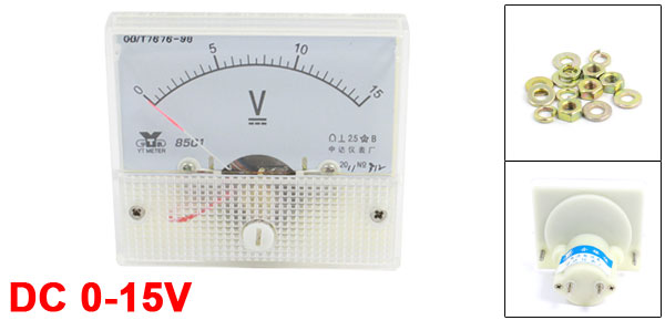 Product Name Analog Voltage Panel Meter Model 85C1 Measuring Ampere Range DC 0-15V Accuracy Class 2.5 Meter Face Size(Approx) 65 x 55mm / 2.6" x 2.3"(L*W) Screw Dia 3mm/ 0.12" Overall Depth 54mm / 2.1" Color White Net Weight 73g Package Content 1 x Voltage Panel Meter - Reviews