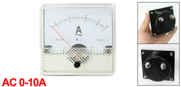 Product Name Analog Ammeter Model DH-80 Measuring Current Range AC 0-10A Accuracy Class 2.5 Meter Face Size(Approx) 8 x 8 x 1.3cm / 3.1" x 3.1" x 0.39"(L*W*T) Thread Size 2.8mm x 0.9mm(D*L)
