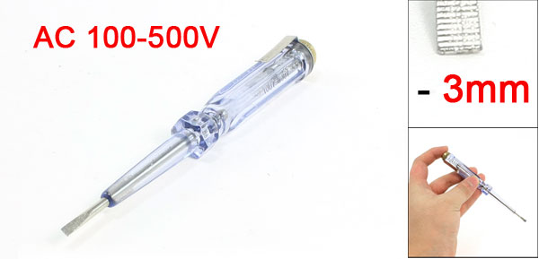 Clear Blue Plastic Grip 3mm Slotted Voltage Test Electroprobe AC 100-500V